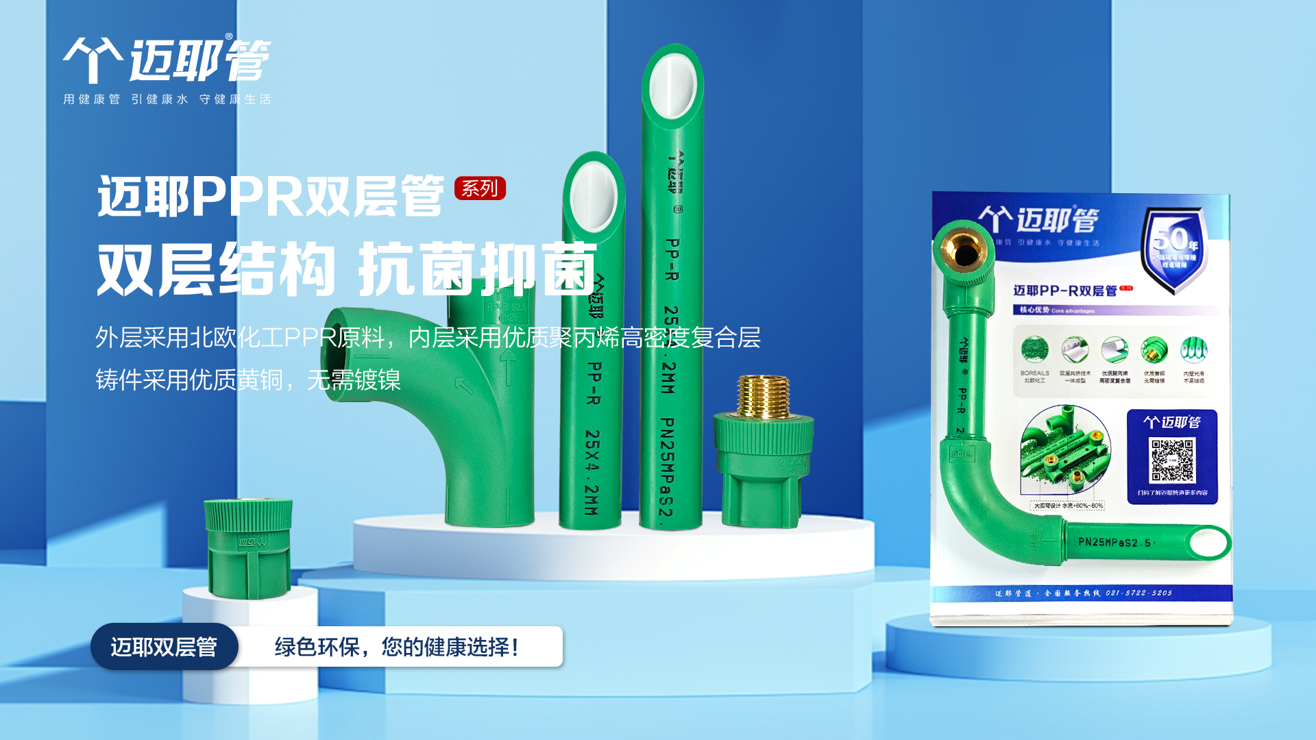 上海邁耶建材有限公司是知名塑料管道系統生產、經營企業,擁有多年進口管道領域推廣應用經驗,“邁耶管”品牌立足國民需求,以品質服務客戶,結合自身多年的管道技術、研發優勢,專業技術團隊嚴格把控,甄選優質原材料,引進歐洲先進生產技術和設備,致力于研發打造一款價格親民、品質領先的國民管道,用“健康管”,引導“健康水”,守護“健康生活”。邁耶PP-R雙層管,外層采用北歐化工PPR原料,內層采用優質聚丙烯和阻氧材料復合層,雙層共擠技術一體成型,提升防護等級,提高穩定性,改善管道遮光性能,有效減少微生物滋生,抗菌抑菌,管材內壁光滑,長久使用不結垢,保證水質潔凈。鑄件采用優質黃銅,不易氧化,無需鍍鎳,注塑無縫嵌...